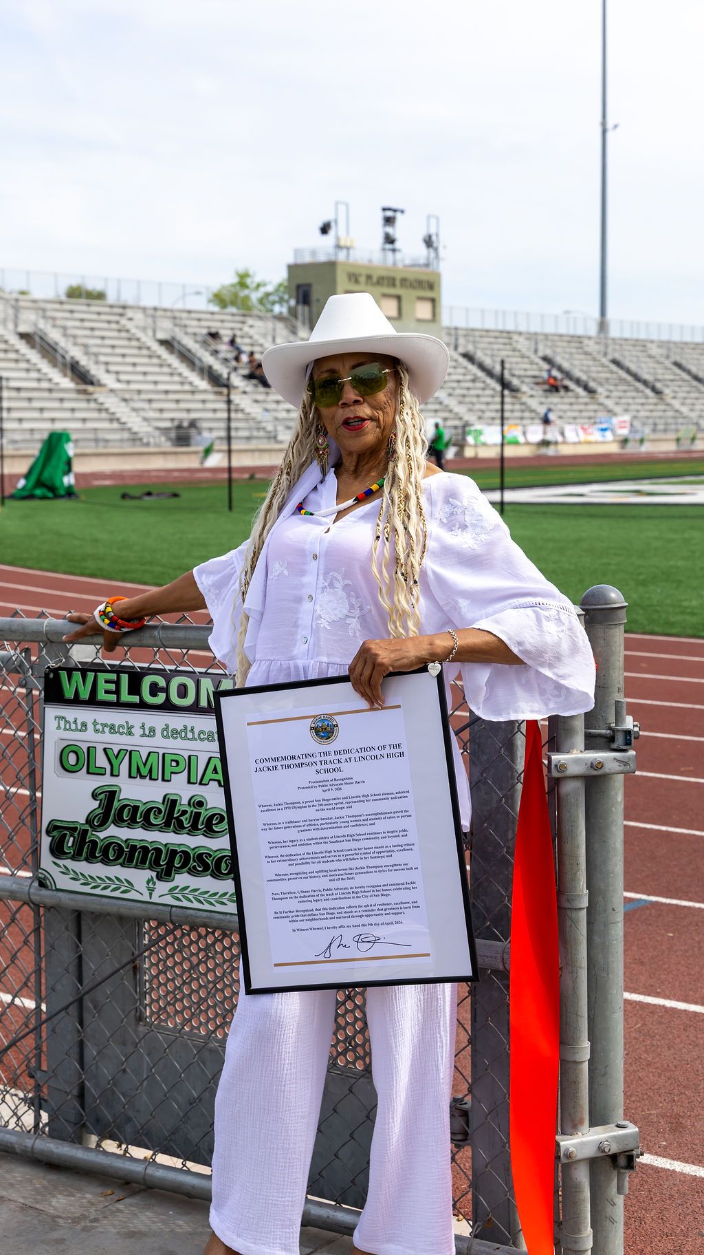 The San Diego community came together to celebrate Olympian Jackie Thompson as Lincoln High School dedicated its track in her honor. Read about the event here.