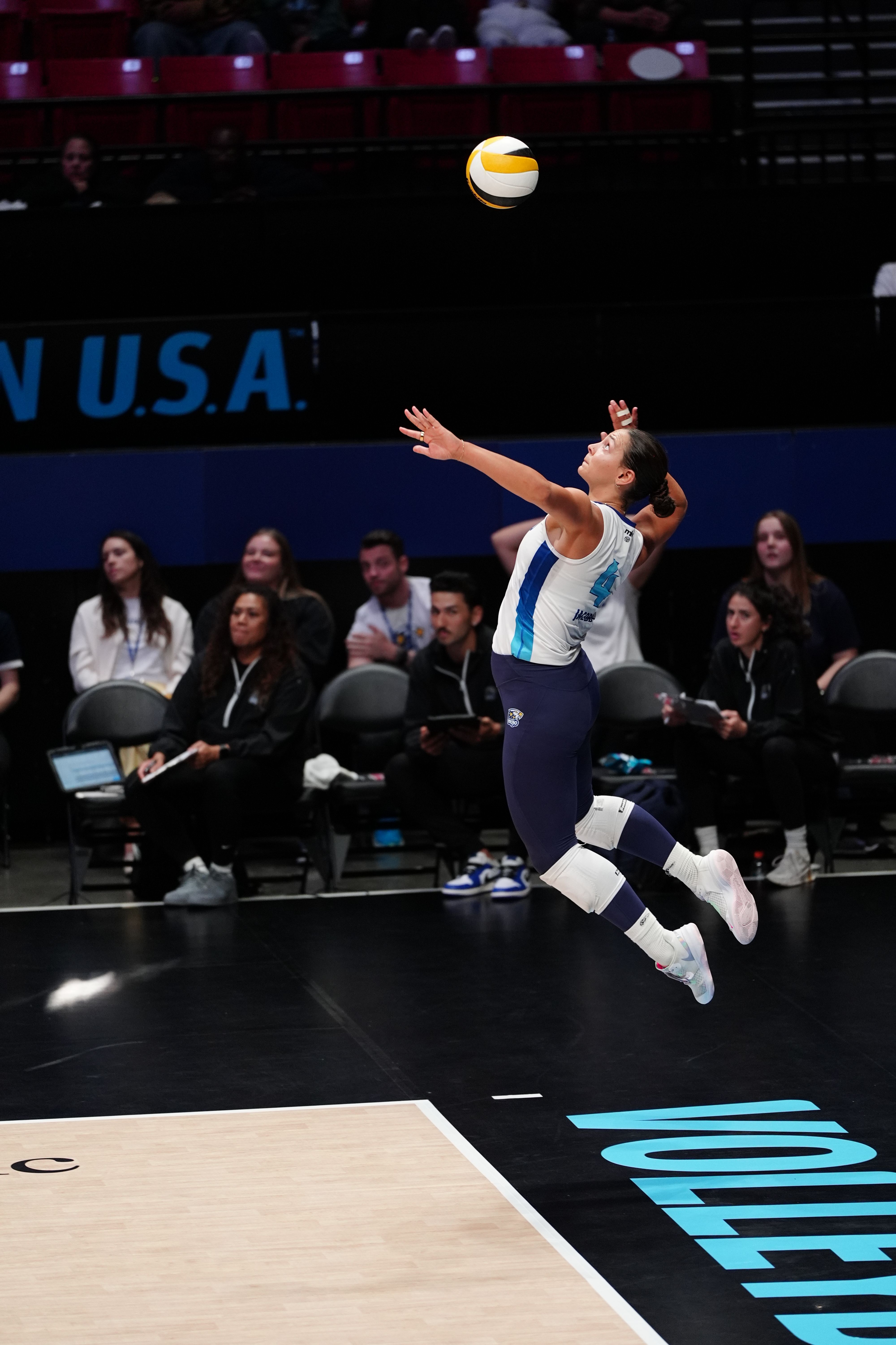 Mojo Outside Allison Jacobs gets height for her serve. Miguel Mejia/MiguelMejiaPhotography